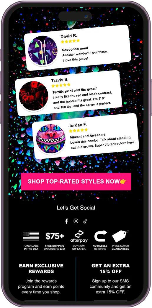 We implemented a festival-season-aware sending strategy, prioritizing engaged ravers and recent shoppers while rebuilding domain reputation. The team revamped email templates to maintain iEDM's bold visual identity while meeting deliverability best practices and established advanced segmentation based on music preferences and festival attendance patterns.