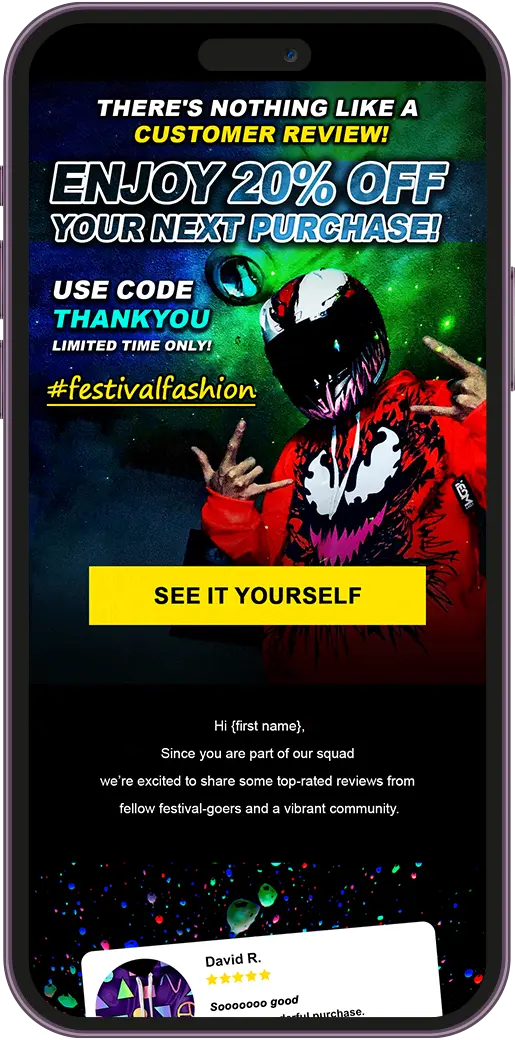 Our high-energy mix of personalized notifications for trending pieces, VIP early access, and festival countdown campaigns didn't just boost sales—it built a thriving community of fashion-forward ravers who know exactly where to find their next show-stopping look.
