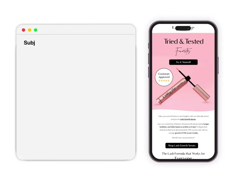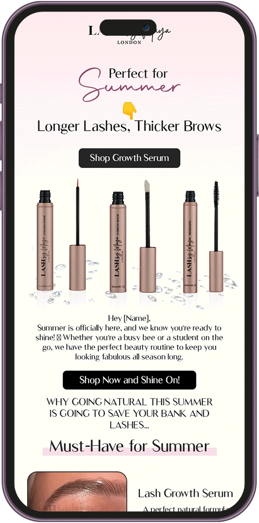 We advanced Lash by Maya's email strategy into a glamorous flutter of eye-catching content that had the brand’s beauty-obsessed audience batting their lashes for more.