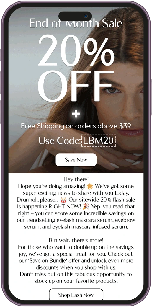 By diving into their clients' lash desires and beauty routines, we crafted email sequences that sparkled with personality - from dramatic volume tips to natural enhancement secrets. We wove together before-and-after transformations with expert application tips and irresistible offers that turned curious lash lovers into confident brand evangelists, while our Lash & Luxe Insider series kept their community dazzled with personalized care routines and beauty trend forecasts that made every appointment feel like stepping onto their own red carpet moment.